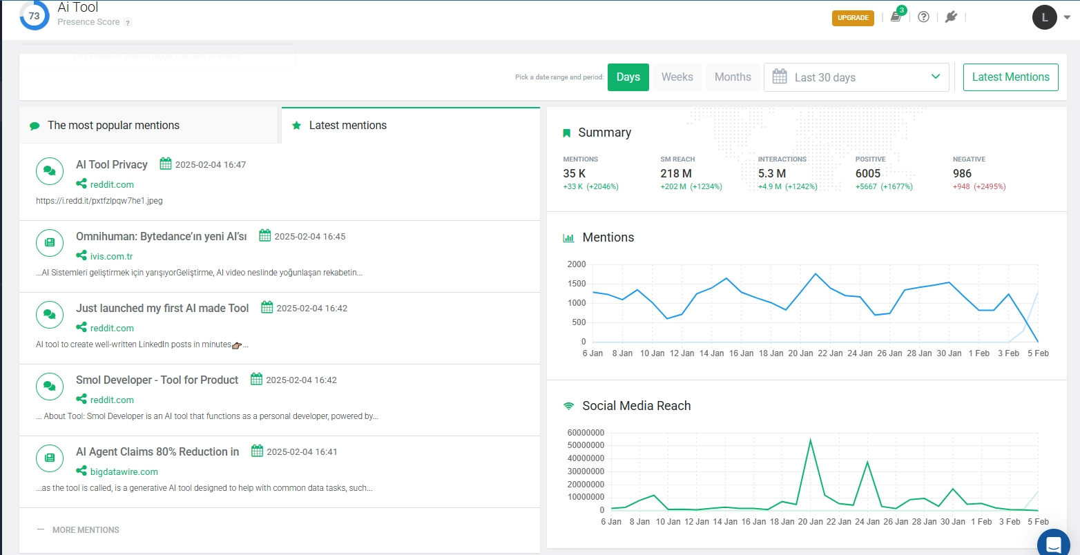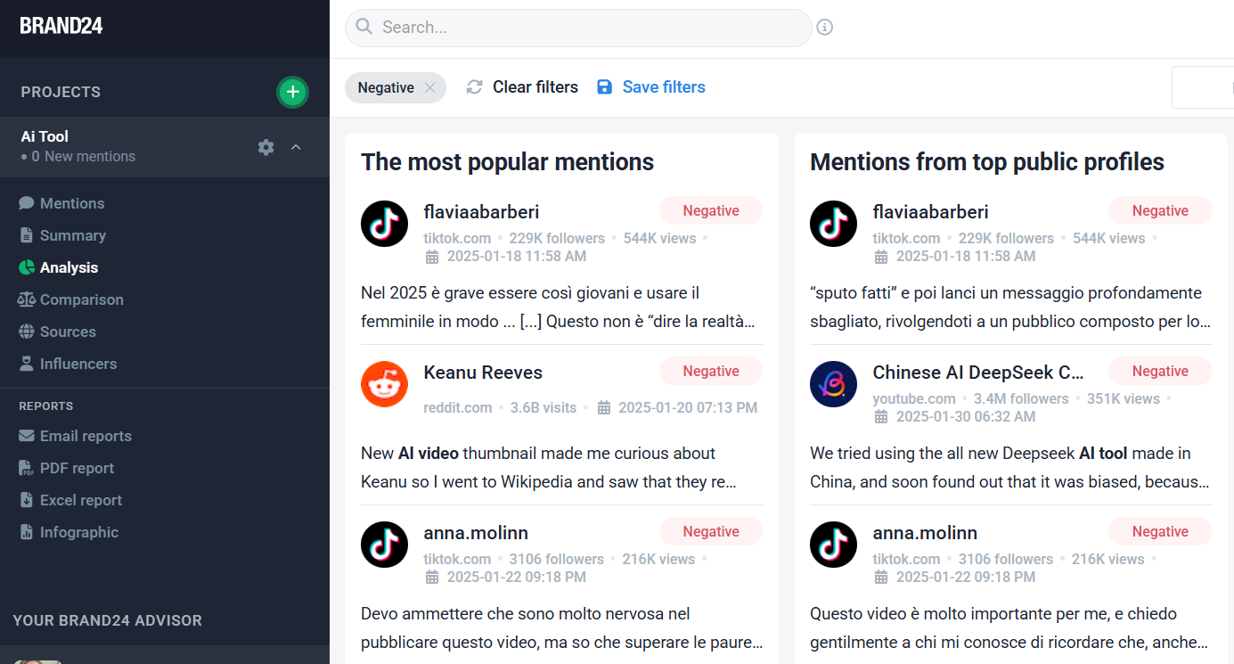 Brand24 is like Google Alerts on steroids. It scouts the internet—social media, news, blogs, even that sketchy Reddit thread about your brand—to tell you exactly where, when, and how people mention you. No more flying blind.